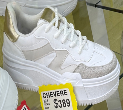 Tenis en blanco con detalles en beige y oro, suela gruesa que los hace destacar al instante. Perfectos para un look fresco, versátil y con mucha personalidad.